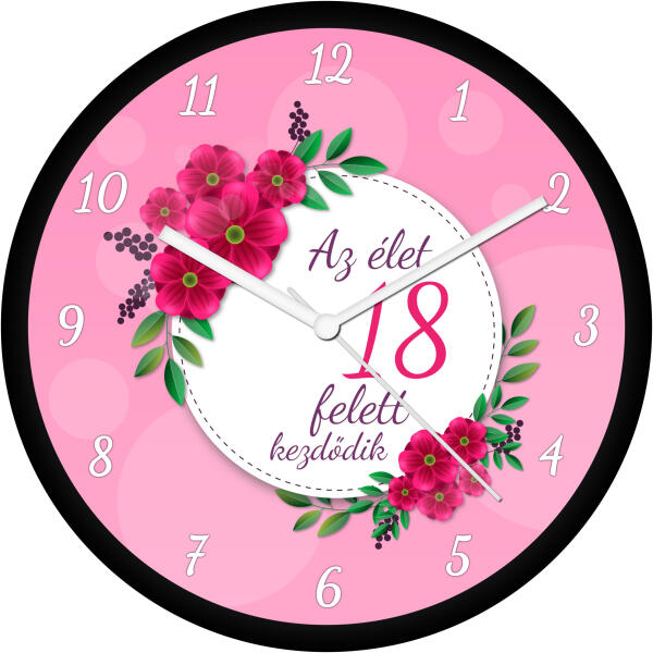 30 cm átmérőjű műanyag falióra, átlátszó üvegburával csendes, folyamatosan járó óraszerkezet nyomdai minőségben nyomtatott óralap színes fém mutatók kartondoboz csomagolás Az óra 1 db AA ceruzaelemmel működik. A csomag elemet nem tartalmaz! Az órát összeszerelve, működésre készen szállítjuk, neked csak a helyére kell akasztanod és gyönyörködni benne!