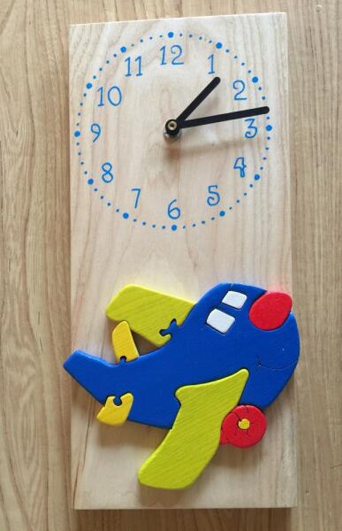 Kőrisfából készült gyermek óra. 2 csavar segítségével a falra rögzíthető. Méretei: 16 cm széles, 34 cm magas Elemmel, német óraszerkezettel szállítjuk.