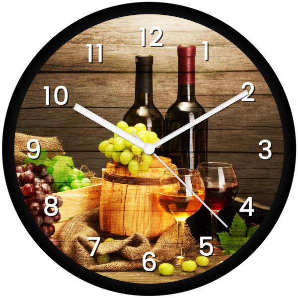 30 cm átmérőjű műanyag falióra, átlátszó üvegburávalcsendes, folyamatosan járó óraszerkezetnyomdai minőségben nyomtatott óralapszínes fém mutatókkartondoboz csomagolásAz óra 1 db AA ceruzaelemmel működik. A csomag elemet nem tartalmaz!Az órát összeszerelve, működésre készen szállítjuk, neked csak a helyére kell akasztanod és gyönyörködni benne!