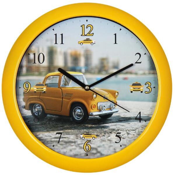 30 cm átmérőjű műanyag falióra, átlátszó üvegburávalcsendes, folyamatosan járó óraszerkezetnyomdai minőségben nyomtatott óralapszínes fém mutatókkartondoboz csomagolásAz óra 1 db AA ceruzaelemmel működik. A csomag elemet nem tartalmaz!Az órát összeszerelve, működésre készen szállítjuk, neked csak a helyére kell akasztanod és gyönyörködni benne!