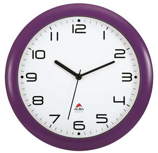 kvarcóra lila színű kerettel átmérő: 30 cm szélesség: 5,5 cm számméret: 1,8 cm 1 darab LR6/AA elemmel működik (nem tartozék) zajszint: