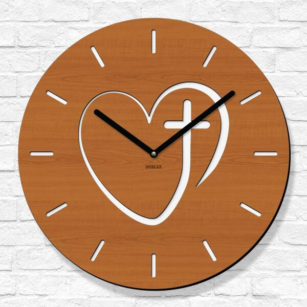 Hozza otthonába a hit és szeretet szimbólumát a „Kereszt a szívben faliórával. Ez a hívőknek készült fa óra csendes, ketyegésmentes mechanizmusával ötvözi a praktikumot és a keresztény üzenetet. Kiemelkedő dekoráció lehet a nappaliban, hálószobában, konyhában vagy folyosón. Tökéletes ajándék szülőknek, nagyszülőknek vagy barátoknak, akik értékelik e különl