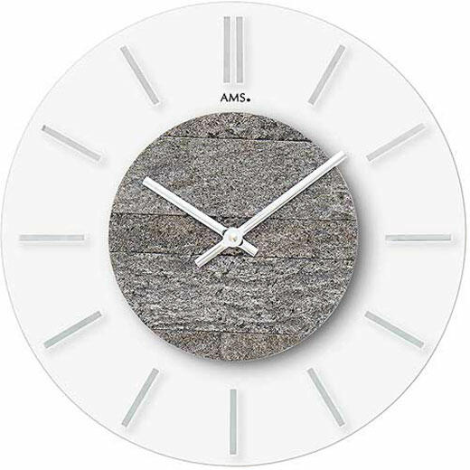 Csodálatos természetes kő utánzatú betéttel és fém kiegészítőkkel díszített üveg falióra. A német AMS üveg falióra mérete: 30x4cm