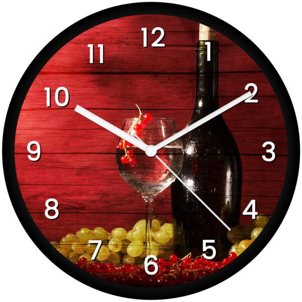 30 cm átmérőjű műanyag falióra, átlátszó üvegburávalcsendes, folyamatosan járó óraszerkezetnyomdai minőségben nyomtatott óralapszínes fém mutatókkartondoboz csomagolásAz óra 1 db AA ceruzaelemmel működik. A csomag elemet nem tartalmaz!Az órát összeszerelve, működésre készen szállítjuk, neked csak a helyére kell akasztanod és gyönyörködni benne!