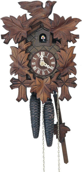 Anton Schneider 100/9 fekete erdei kézzel faragott 1 napos kakukkos óra. A Fekete-erdő Óraszövetsége (VdS) eredetiségi tanúsítvánnyal. Az eredeti fekete-erdei kakukkos óra minden egyes részét kézzel faragták és festették, akárcsak 150 évvel ezelőtt. minden egész és fél órában kakukkol manuálisan elnémítható 34 x 23.5 x 15 cm