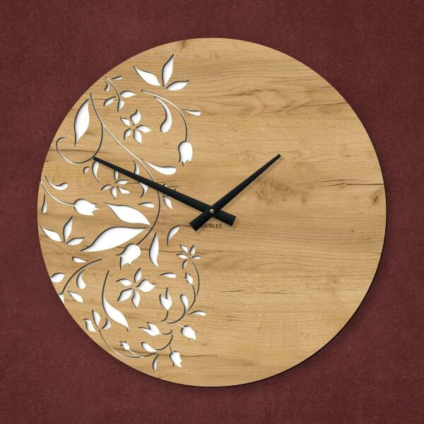 Luxus falióra, amely alkalmas a konyhába vagy a nappaliba, ahol az egész szoba ékköve lesz. A faliórát a provence-i stílus ihlette. Az óra egyik fele precízen kivágott virágokkal van díszítve, amely tökéletesen kiegészíti az óra másik felének minimalista stílusát. Biztosak vagyunk benne, hogy a fa óránkba azonnal beleszeret, és minden térben elegáns díszítőelemként
