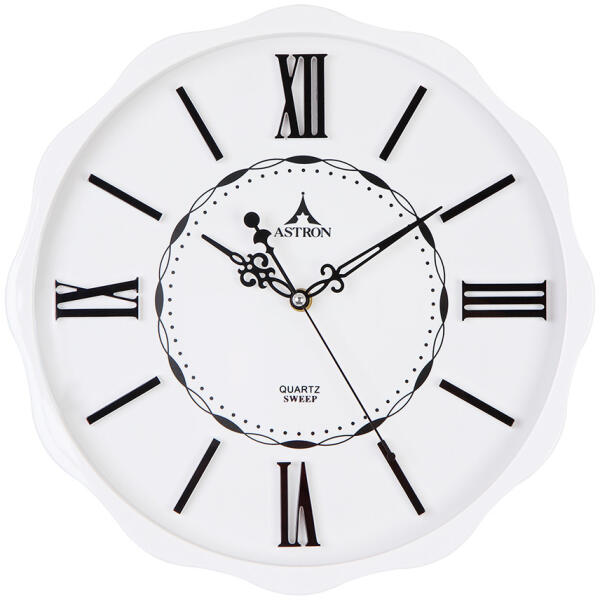 30 cm átmérőjű műanyag falióra, átlátszó üvegburávalcsendes, folyamatosan járó óraszerkezetnyomdai minőségben nyomtatott óralapszínes fém mutatókkartondoboz csomagolásAz óra 1 db AA ceruzaelemmel működik. A csomag elemet nem tartalmaz!Az órát összeszerelve, működésre készen szállítjuk, neked csak a helyére kell akasztanod és gyönyörködni benne!