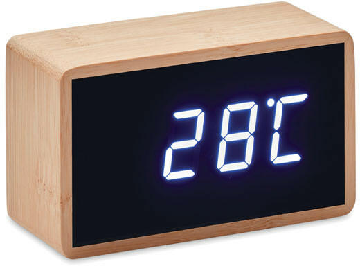 LED ébresztőóra bambusz házzal Fehér LED kijelzős, hőmérős ébresztőóra bambusz borítással. Villásdugós csatlakozóval szállítjuk. Az Egyesült Királyságban való használatra nem alkalmas. A bambusz természetes anyag, termékenként szín- és méretbeli eltérések jelentkezhetnek, ami befolyásolhatja a dekoráció végső eredményét.