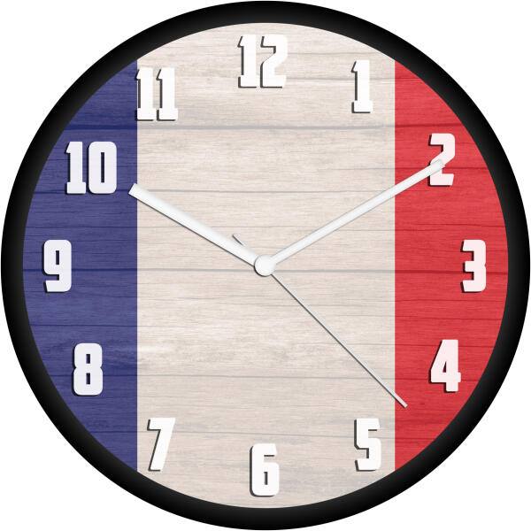 30 cm átmérőjű műanyag falióra, átlátszó üvegburával csendes, folyamatosan járó óraszerkezet nyomdai minőségben nyomtatott óralap színes fém mutatók kartondoboz csomagolás Az óra 1 db AA ceruzaelemmel működik. A csomag elemet nem tartalmaz! Az órát összeszerelve, működésre készen szállítjuk, neked csak a helyére kell akasztanod és gyönyörködni benne!