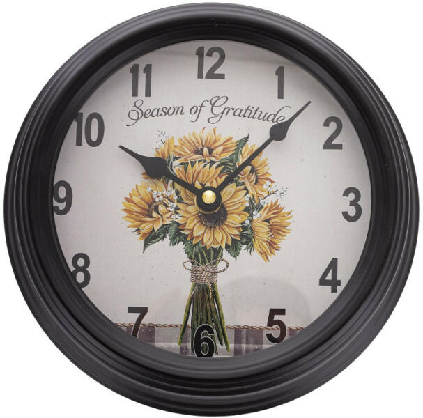 30 cm átmérőjű műanyag falióra, átlátszó üvegburávalcsendes, folyamatosan járó óraszerkezetnyomdai minőségben nyomtatott óralapszínes fém mutatókkartondoboz csomagolásAz óra 1 db AA ceruzaelemmel működik. A csomag elemet nem tartalmaz!Az órát összeszerelve, működésre készen szállítjuk, neked csak a helyére kell akasztanod és gyönyörködni benne!