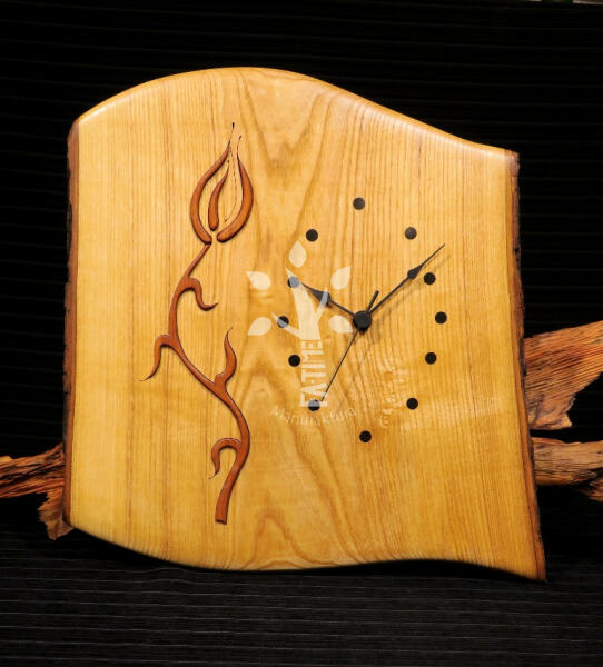 Az óra kőrisfából készült. Az intarziás indexek wengéből valók. www. fajandekok. hu www. fa-time. hu