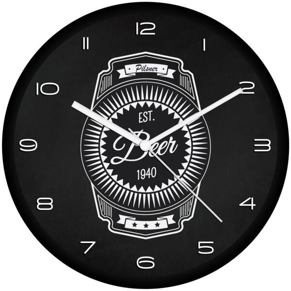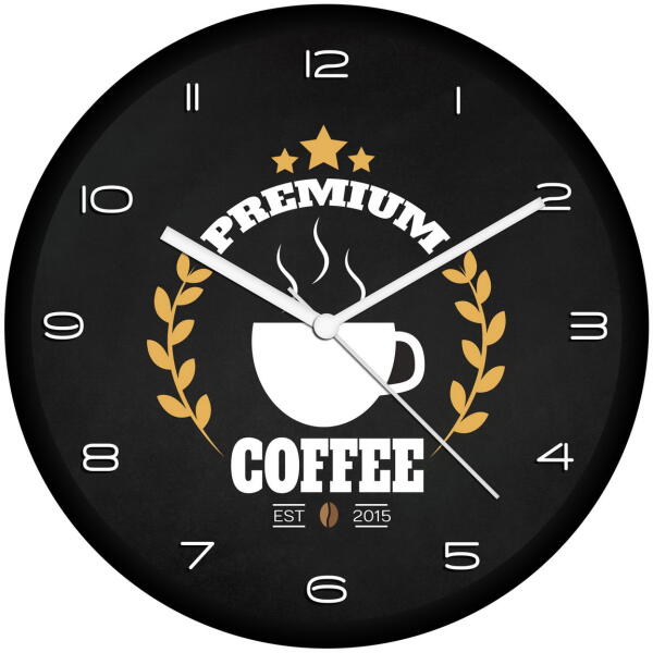 30 cm átmérőjű műanyag falióra, átlátszó üvegburávalcsendes, folyamatosan járó óraszerkezetnyomdai minőségben nyomtatott óralapszínes fém mutatókkartondoboz csomagolásAz óra 1 db AA ceruzaelemmel működik. A csomag elemet nem tartalmaz!Az órát összeszerelve, működésre készen szállítjuk, neked csak a helyére kell akasztanod és gyönyörködni benne!