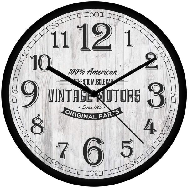 Az óra számlapja üveggel fedett. Burkolata: műanyag Átmérő: 30 cm Működése: 1db AA (ceruza)elem, elemet nem tartalmaz