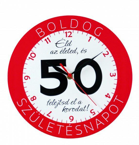 Falióra kerek 50 Boldog születésnapot 28cm 02605 - Óra, falióra 1 db AA elemmel működik, mely nem tartozék. Befoglaló méretek 30x4x30 cmAnyaga fa