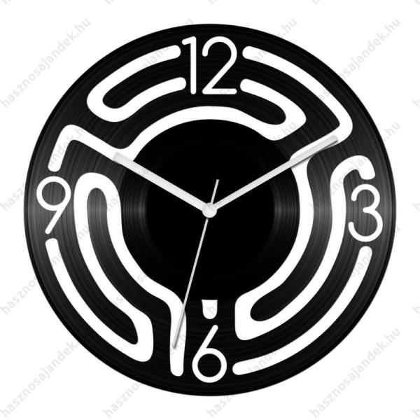 Anyaga: bakelit lemez Óraszerkezet: csendes, fém mutatókkal Mérete: 30cm átmérő Működése: 1db AA elemmel (1,5V-os ceruza elem)nem tartozék