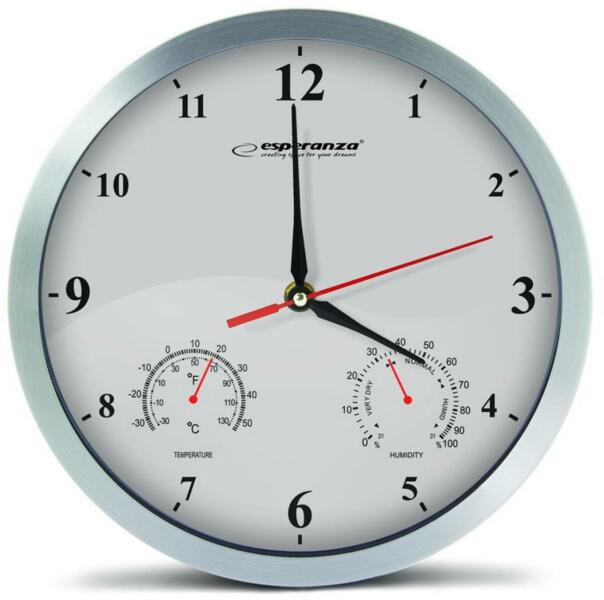 Ez az óra nem csak a pontos időt mutatja, hanem a szoba hőmérsékletét és a páratartalmat is. Rendkívül elegáns és stílusos kialakításának köszönhetően kiválóan alkalmas lakások, irodák, üzletek vagy éttermek díszítésére. A nagyméretű tárcsa megkönnyíti az idősebb emberek számára az idő leolvasását a szobában, bárhol. Átmérő: 30 cmVastagság: 4cmAnyag: A