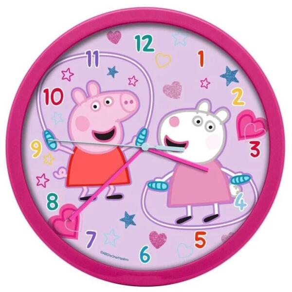 Ez a vidám Peppa malac falióra tökéletes kiegészítője lesz bármelyik gyerekszobának! Peppa malac falióra A számlapon Peppa malac és legjobb barátja, Suzy látható, amint boldogan ugróköteleznek, körülöttük színes szívecskék és csillagok díszítik a hátteret, ezzel is feldobva az óra megjelenését. A rózsaszín keret és a színes számok még vonzóbbá teszik ezt a k