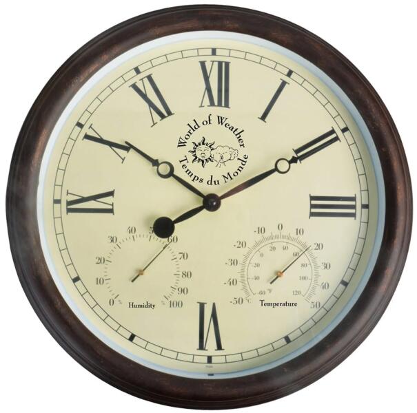 Amikor a szabadban van, és jól érzi magát, könnyen megfeledkezhet az időről. Ez az Esschert Design TF009 állomásóra megmutatja az időt, a hőmérsékletet és a páratartalmat. Igazán értékes lesz kertjében, teraszán vagy erkélyén. Ez a díszes kültéri óra elegáns megjelenésű. Az óra római számokkal van ellátva. A beépített hőmérő -50 és 50 °C közötti hőmérs