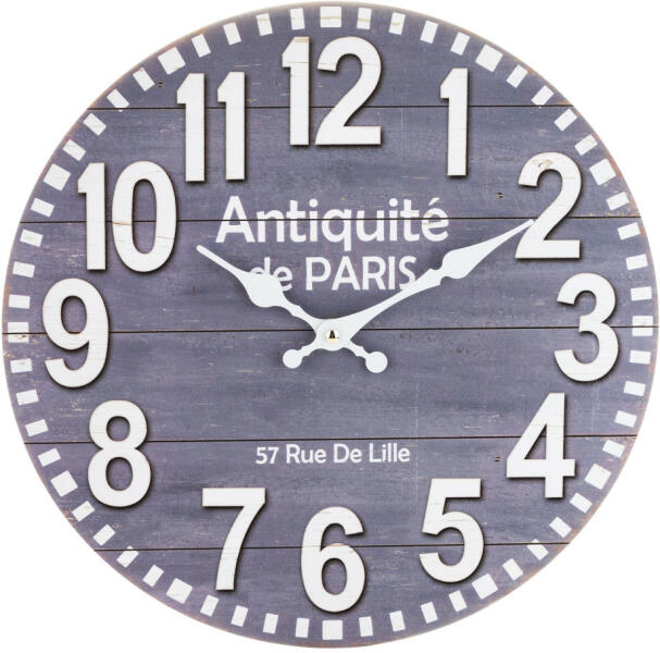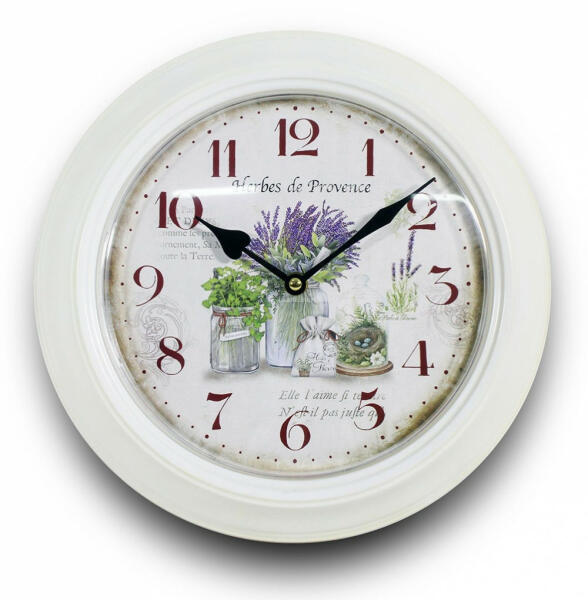 kvarcóra ezüst színű kerettel átmérő: 30 cm szélesség: 5,5 cm számméret: 1,8 cm 1 darab LR6/AA elemmel működik (nem tartozék) zajszint: