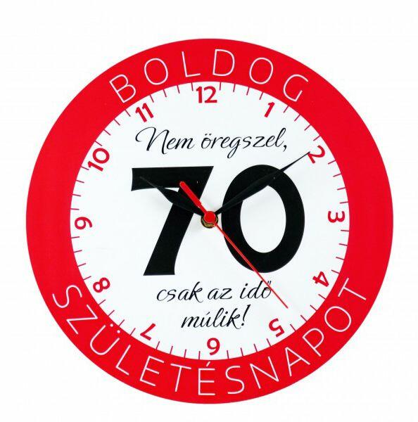 Falióra kerek 70 Boldog születésnapot 28cm 02607 - Óra, falióra 1 db AA elemmel működik, mely nem tartozék. Befoglaló méretek 30x4x30 cmAnyaga fa