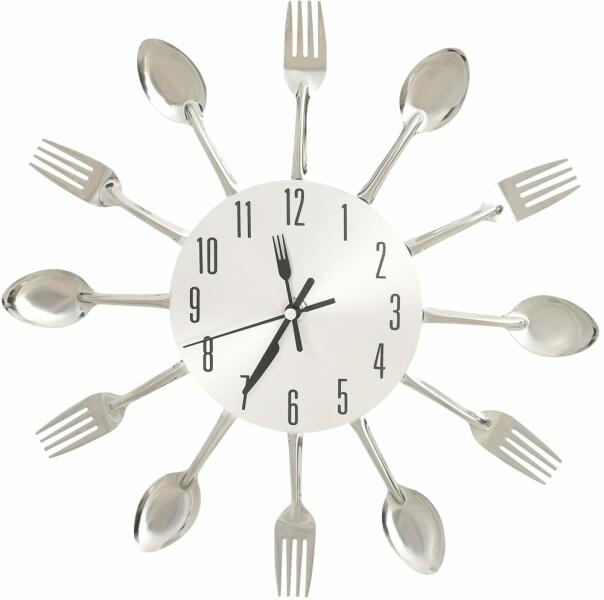 Díszítse konyháját vagy étkezőjét ezzel a figyelemreméltó faliórával. Ez a falióra villákkal és kanalakkal lett feldíszítve, így enteriórje vonzó darabja lehet. Az óra tárcsája a kör közepén található, és jól olvasható számokkal lett ellátva, hogy mindig gyorsan és könnyen le lehessen olvasni róla a pontos időt.