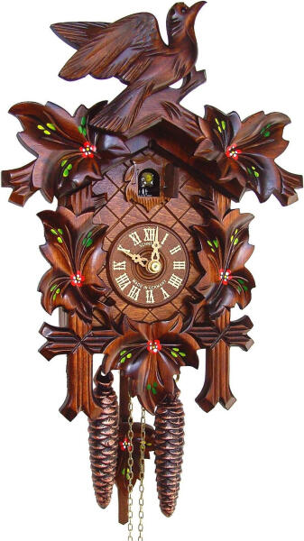 Anton Schneider 90/10 fekete erdei kézzel faragott 1 napos kakukkos óra. A Fekete-erdő Óraszövetsége (VdS) eredetiségi tanúsítvánnyal. Az eredeti fekete-erdei kakukkos óra minden egyes részét kézzel faragták és festették, akárcsak 150 évvel ezelőtt. minden egész és fél órában kakukkol manuálisan elnémítható 30 x 20 x 15.5 cm