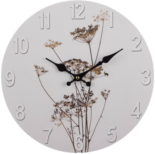 Az óra számlapja üveggel fedett. Burkolata: műanyag Átmérő: 30 cm Működése: 1db AA (ceruza)elem, elemet nem tartalmaz