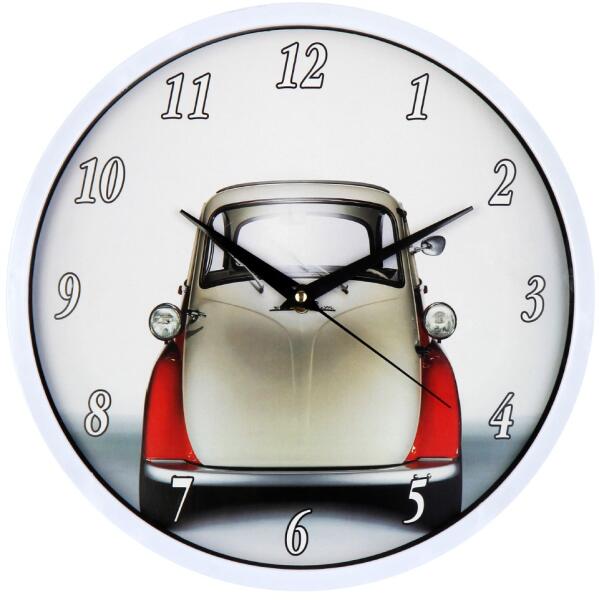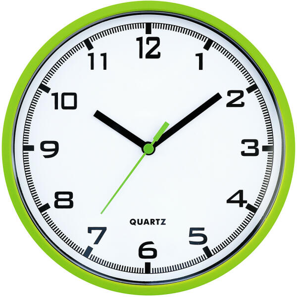 30 cm átmérőjű műanyag falióra, átlátszó üvegburával csendes, folyamatosan járó óraszerkezet nyomdai minőségben nyomtatott óralap színes fém mutatók kartondoboz csomagolás Az óra 1 db AA ceruzaelemmel működik. A csomag elemet nem tartalmaz! Az órát összeszerelve, működésre készen szállítjuk, neked csak a helyére kell akasztanod és gyönyörködni benne!
