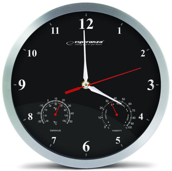 Ez az óra nem csak pontos időt mutatja, hanem a szobahőmérsékletet és páratartalmat. A rendkívül elegáns és stílusos kialakításnak köszönhetően kiválóan illeszkedik a lakások, irodákat, üzleteket és éttermeket berendezéseihez. A nagyméretű tárcsa lehetővé teszi, hogy az idősebb személy számára is könnyedén látható legyen a pontos időt, bárhol a helyiségben.