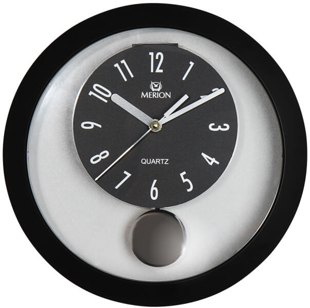 mágneses hátoldalú kvarcóra erős mágnesének köszönhetően bármilyen fém felületre helyezhető modern, elegáns, fekete műanyag keret műanyag előlap, fehér háttér, fekete számok átmérő: 25 cm szélesség: 4,4 cm számméret: 1,8 cm 1 db LR6/AA elemmel működik (nem tartozék) zajszint: