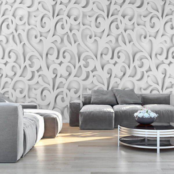 f-A-0309-a-b Tartós, víz és karcálló, falra ragasztható "White ornament" flíz fotótapéta . Az inspiráló motívummal ellátott "White ornament" című fotótapéta hatásosan díszít minden helyiséget. A flíz tapéták ragasztással kerülnek rögzítésre. Minden helyiségben felragasztható, még fürdőszobában vagy konyhában is. Flíz tapéta, fényes bevonat. A 100%-os flíz el