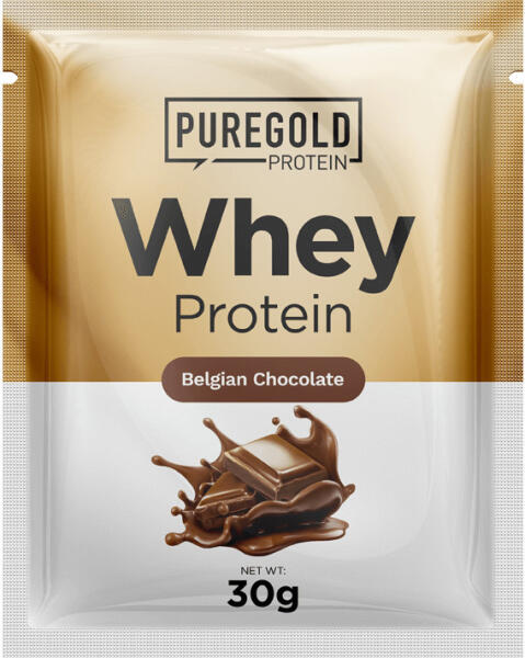 Whey Protein fehérjepor 30g, finom, krémes és intenzív ízvilágú tejsavó fehérje koncentrátum, -és izolátum keveréke hozzáadott Digezyme® emésztőenzimmel. Pure Gold Whey Protein 100%-ban Volactive® tejsavófehérjéből készült Tejsavófehérje- izolátummal megerősítve a magasabb és tisztább fehérjetartalomért Kiemelkedően magas fehérjetartalom Páratlan ízélmény, kr
