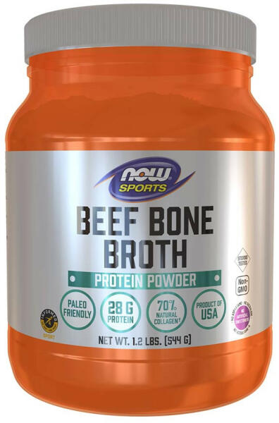 MARHAFEHÉRJE POR A NOW® Sports Beef Bone Broth Powder prémium minőségű marhacsont-kivonatot tartalmaz, amely adagonként 28 g fehérjét biztosít. GMO-mentes 28 g fehérje 70% természetes kollagén† Amerikai termék A marhahús csontleves sok kultúrában gyakori táplálékalap, mivel természetesen előforduló fehérjéket, aminosavakat, kollagént és még sok mást tartalmaz. Ez a p