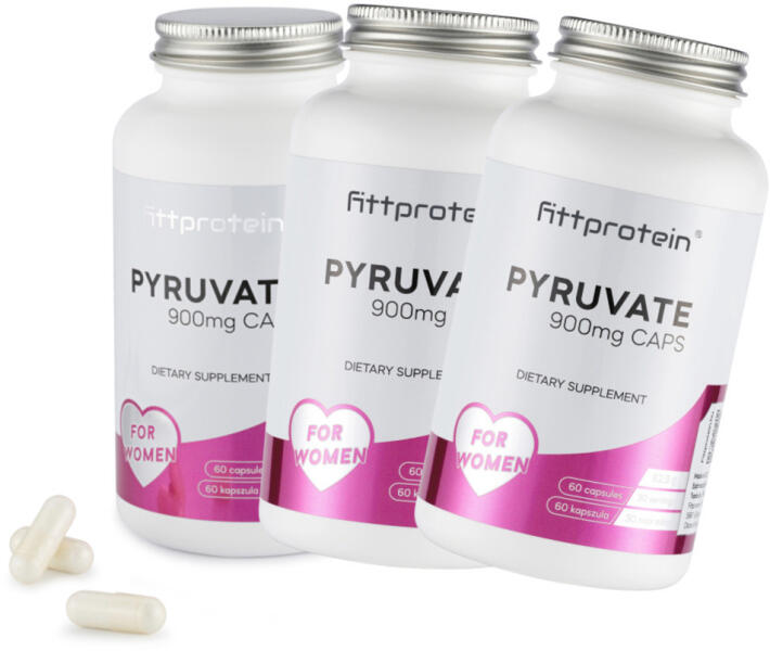 Csomagban jobban megéri! Tartalma 3db Fittprotein PYRUVATE 900mg CAPS, amely 90 napi adagot tartalmaz. Okos választás a piroszőlősav (PYRUVATE) hatóanyag beszerzésére. Fittprotein PYRUVATE 900mg CAPS stimulánsmentes testsúlymenedzsment étrend-kiegészítő. A pyruvate más néven piroszőlősav egy sejtközi energiaátvivő anyag, amely szénhidrátok lebontása során keletkezik a test