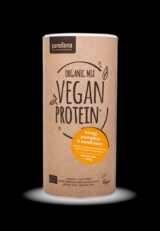 Vegan protein Purasana A természetes ízű Vegan Protein Mix tök, napraforgó, kender fehérje kombinációjából áll, amelyek együttesen 58% fehérjetartalmat biztosítanak, ami ideális növényi alternatíva az állati fehérjével szemben.