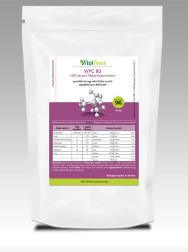 WPC 80 100% tejsavófehérje koncentrátum natúr, ízesítés nélküli 80% fehérje tartalomA WPC 80 (Whey Protein Concentrate) egy teljesen natúr, pasztörizált, ultraszűrt és frissen porlasztva szárított, kiváló minőségű 100%-os tejsavófehérje koncentrátum, amely 80% fehérjét tartalmaz és igen könnyen emészthető. 100 g WPC 80 fehérjetartalma: 80 gramm. Fogyasztása ajánl
