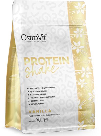 OstroVit Protein Shake - Ízletes és tápláló fehérjeturmix Az OstroVit Protein Shake minden adagja 21 gramm magas minőségű fehérjét tartalmaz. Finom vanília ízű és nem tartalmaz hozzáadott cukrot. Főbb tulajdonságok: Magas esszenciális aminosav-tartalom - Egy adag fehérjénkben megtalálható 3 gramm elágazó láncú aminosav (BCAA) és 8 gramm esszenciális aminosav (EAA), ame