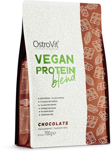OstroVit - Vegan Protein - Csokoládé - 700 g Az OstroVit Vegan Protein Blend egy kiváló minőségű növényi alapú fehérjekeverék , mely közel 80%-os fehérjetartalommal büszkélkedhet. Ez a fehérje kifejezetten vegetáriánusok és vegánok számára készült, vagy akik érzékenyek a tejre. Főbb tulajdonságok: Magas növényi fehérjetartalom - egy adag 23 gramm fehérjét tartalma
