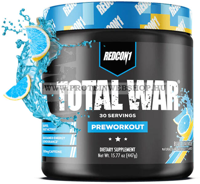 A Redcon1 Total War egy speciálisan összeállított edzés előtti formula. A Redcon1 Total War egy speciálisan összeállított edzés előtti formula. Tiszta 14,7g hatóanyag adagolókanalanként, ami több mint koffein és olcsó hatóanyagok keveréke. Ha nem edzel keményen, csak az idődet akarod eltölteni a teremben, akkor ez nem a te terméked. Versenyezz és eddz végtelen erővel és