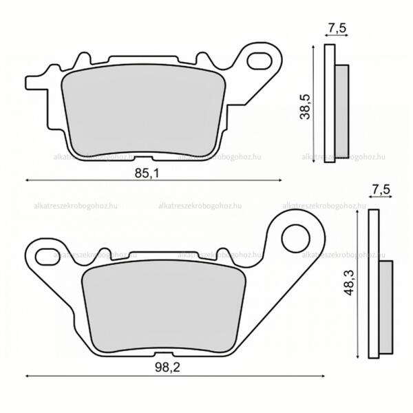 Fékbetét 1 Hosszúság: 42 Szélesség: 97 Vastagság: 9 Fékbetét 2 Hosszúság: 42 Szélesség: 77 Vastagság: 9 Kérjük vásárlás előtt érdeklődjön a termék raktárkészletéről.