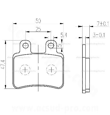 Felfogatási furatközép: 25mm Fékbetét Hosszúság: 45mm Szélesség: 36mm Vastagság: 6mm