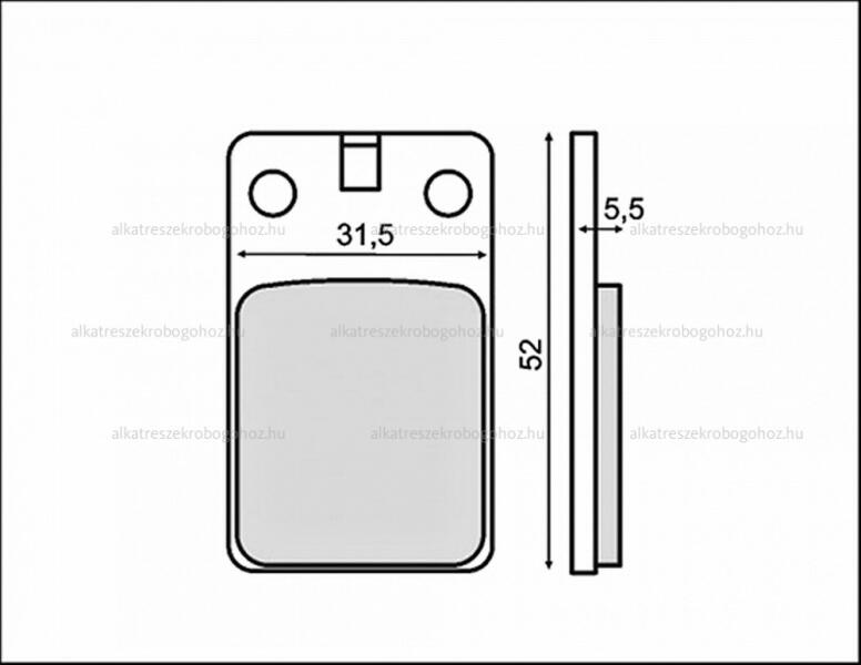 Felfogatási furatközép: 20mm Fékbetét Hosszúság: 52mm Szélesség: 31.5mm Vastagság: 5.5mm Kérjük vásárlás előtt érdeklődjön a termék raktárkészletéről.