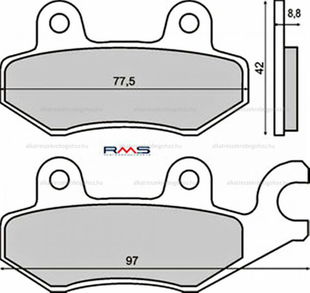 Fékbetét 1 Hosszúság: 42 Szélesség: 94 Vastagság: 8 Fékbetét 2 Hosszúság: 42 Szélesség: 77 Vastagság: 8 Kérjük vásárlás előtt érdeklődjön a termék raktárkészletéről.