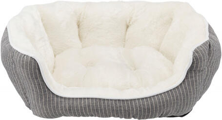 Trixie Davin extra pihe-puha, plüss/filc bélésű, peremes kutyafekhely csúszásgátló aljjal. Belseje krém, külső része szürke színű. Kézzel mosható. Két méretben kapható: 50 x 40 cm; 60 x 45 cm