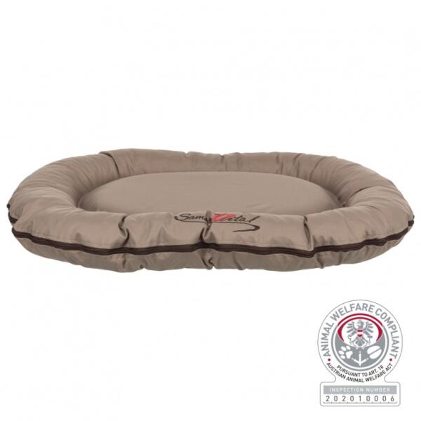 A Montana ovális ágy nagyszerű pihenőhely kutyája számára. Nagyon strapabíró, sérülésálló bútorszövetből készült, nagy mennyiségű szintetikus pehely és hab speciális keverékével töltve, ellenáll a deformációnak, ennek köszönhetően hosszú ideig szolgálja a kutyát. A párna mosógépben vagy kézzel is mosható, aminek köszönhetően az ágy tisztán tartása nagy