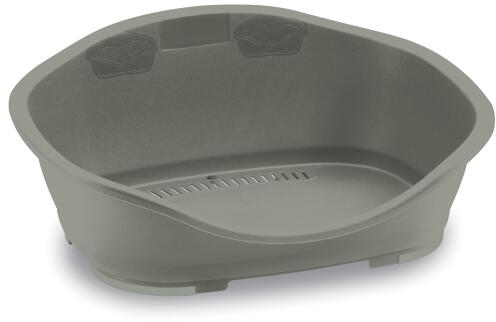 Ez az újrahasznosított, lekerekített, ergonomikus formájú kisállatágy ideális közepes testméretű kutyák számára. Kiváló minőséget garantál és lehetővé teszi kedvenceink nyugodt alvását, köszönhetően a magas és kényelmes peremnek és az alacsonyabb előlapnak, a csúszásgátló lábaknak és a megfelelő szellőzést biztosító alján elhelyezett lyukaknak. Ez a kisá