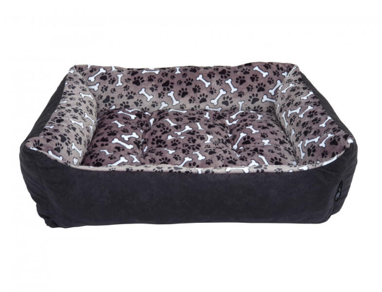 3 MÉRETBEN A megadott méretek a termék külső, befoglaló méreteit jelentik! Külső huzat: Fekete, rövidszálú plüss Fekvőfelület: Szürke alapon fehér csontok és kis-, fekete tappancsok mintájú wellsoft Beltéri használatra javasolt Fekvőfelület : rendkívül lágy tapintású, vastag-, puha plüss (Wellsoft anyag) A kivehető, kétoldalas vastag párna rendkívül jó hősziget