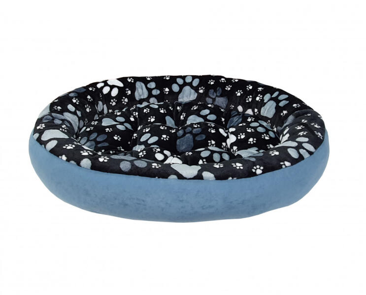 7 MÉRETBEN A megadott méretek a termék külső, befoglaló méreteit jelentik! Külső huzat:Világoskék , rövidszálú plüss Fekvőfelület: Fekete alapon nagy-szürkéskék, és kis-fehér tappancsos mintájú wellsoft Beltéri használatra javasolt Fekvőfelület : rendkívül lágy tapintású, puha plüss A kivehető, kétoldalas vastag párna rendkívül jó hőszigetelést biztosít,