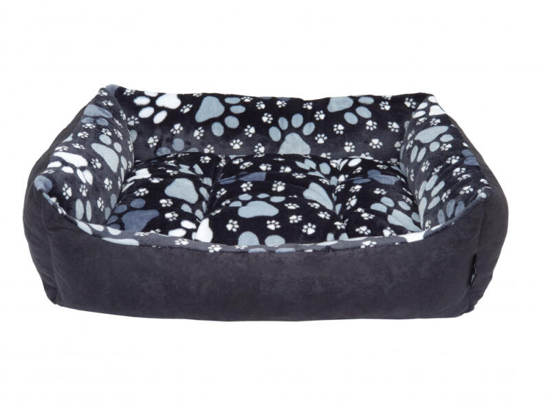 3 MÉRETBEN A megadott méretek a termék külső, befoglaló méreteit jelentik! Külső huzat: Fekete, rövidszálú plüss Fekvőfelület: Fekete alapon nagy-szürkéskék, és kis-fehér tappancs mintájú wellsoft Beltéri használatra javasolt Fekvőfelület : rendkívül lágy tapintású, vastag-, puha plüss (Wellsoft anyag) A kivehető, kétoldalas vastag párna rendkívül jó hősziget