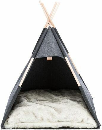 Cave TIPI, 70 x 70 x 70 cm, filc, antracit, hosszú szőrű plüss (poliészter) és poliészter gyapjú töltelékkel készült huzattal ellátott párna a levehető huzat 40 °C-on mosógépben mosható (kímélő program) összecsukható csúszásmentes alj anyag: filc (poliészter) méretek: 70 × 70 × 70 cm szín: antracit